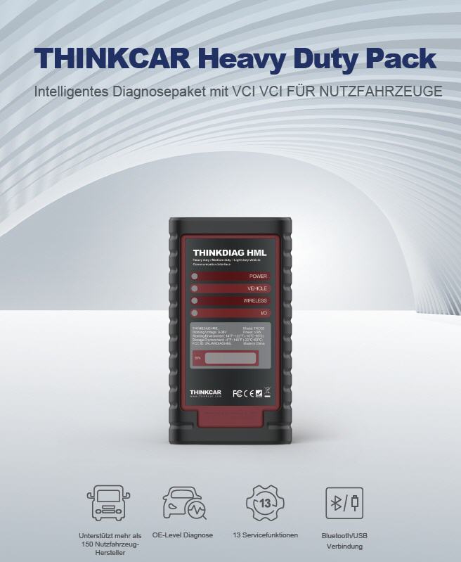 THINKCAR Heavy Duty Pack ist ein intelligentes VCI für 12V/24V Fahrzeuge.