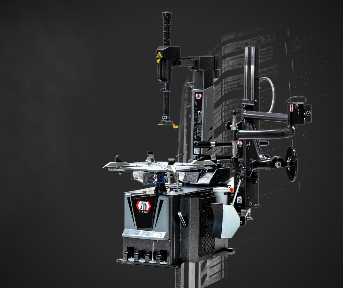 Reifenmontiermaschine bis 26" mit pneumatischem Heckschwenker und Hilfsmontagearm
